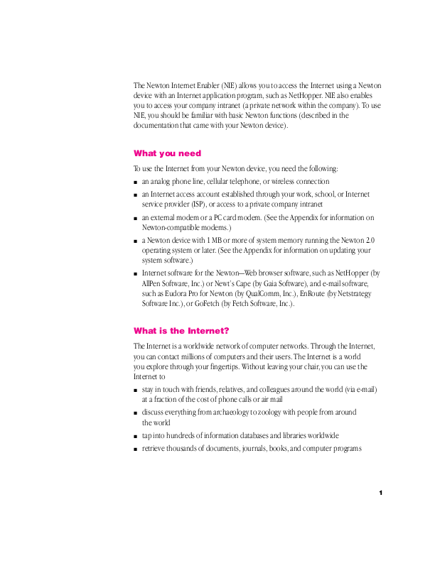 The Newton Internet Enabler (NIE) allows you to access the Internet using a Newton