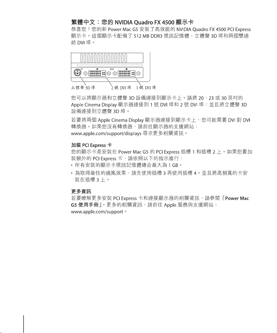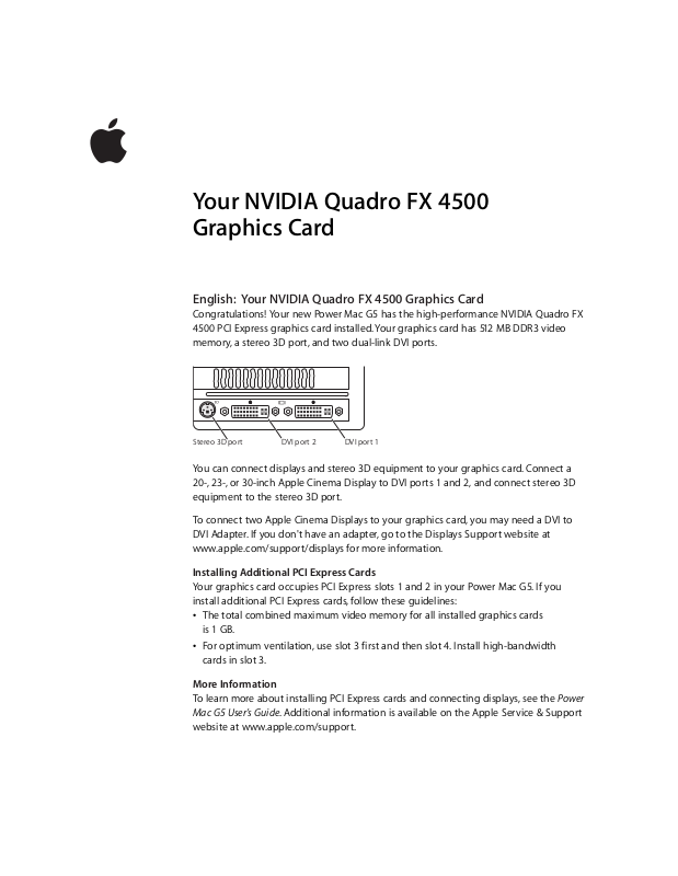 20-, 23-, or 30-inch Apple Cinema Display to DVI ports 1 and 2, and connect stereo 3D