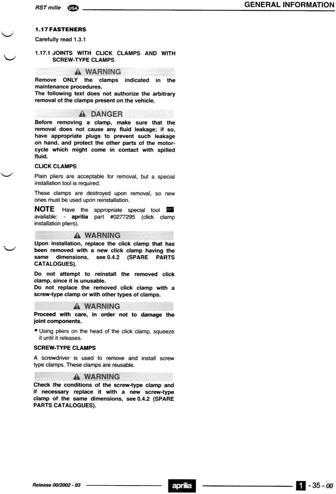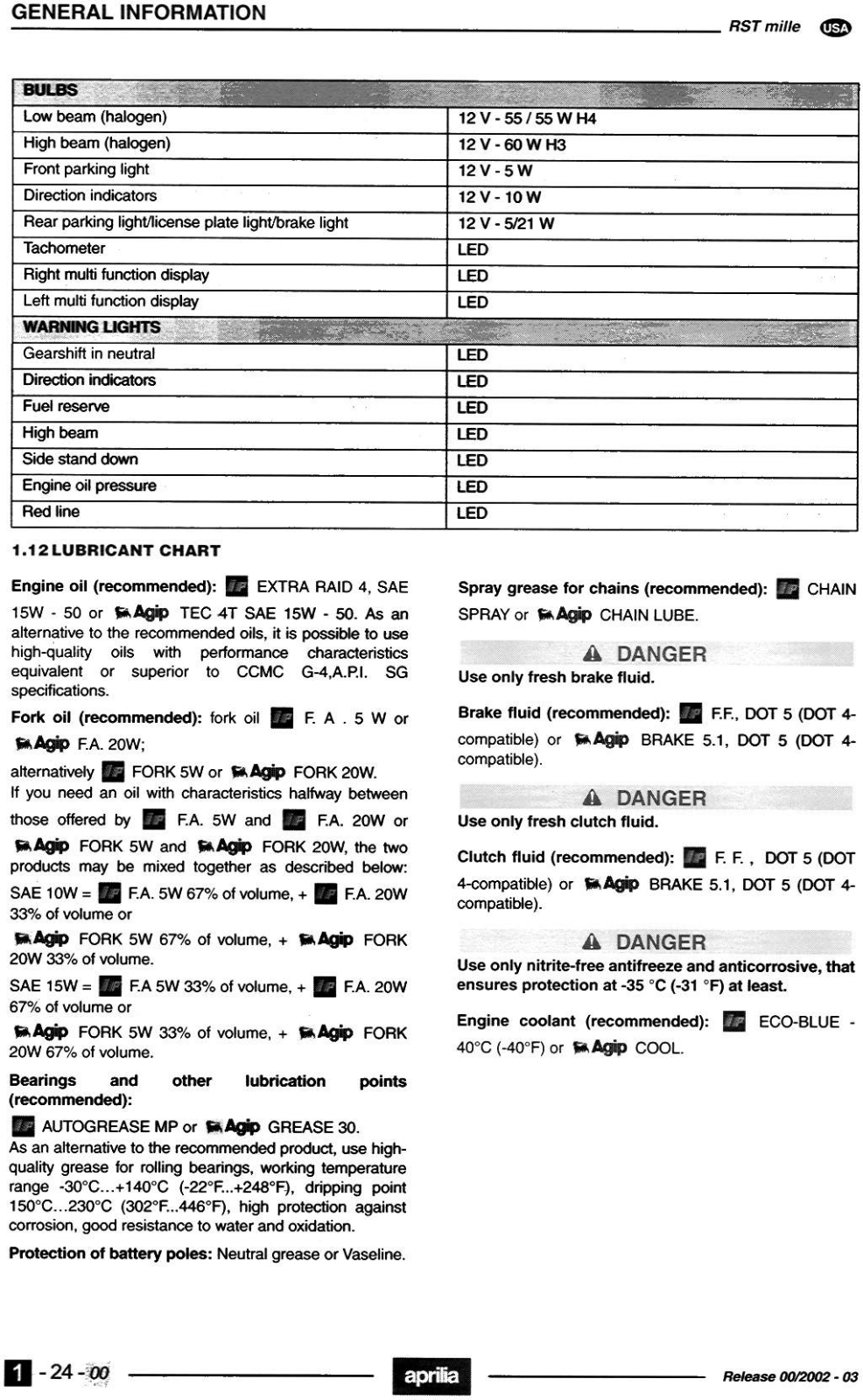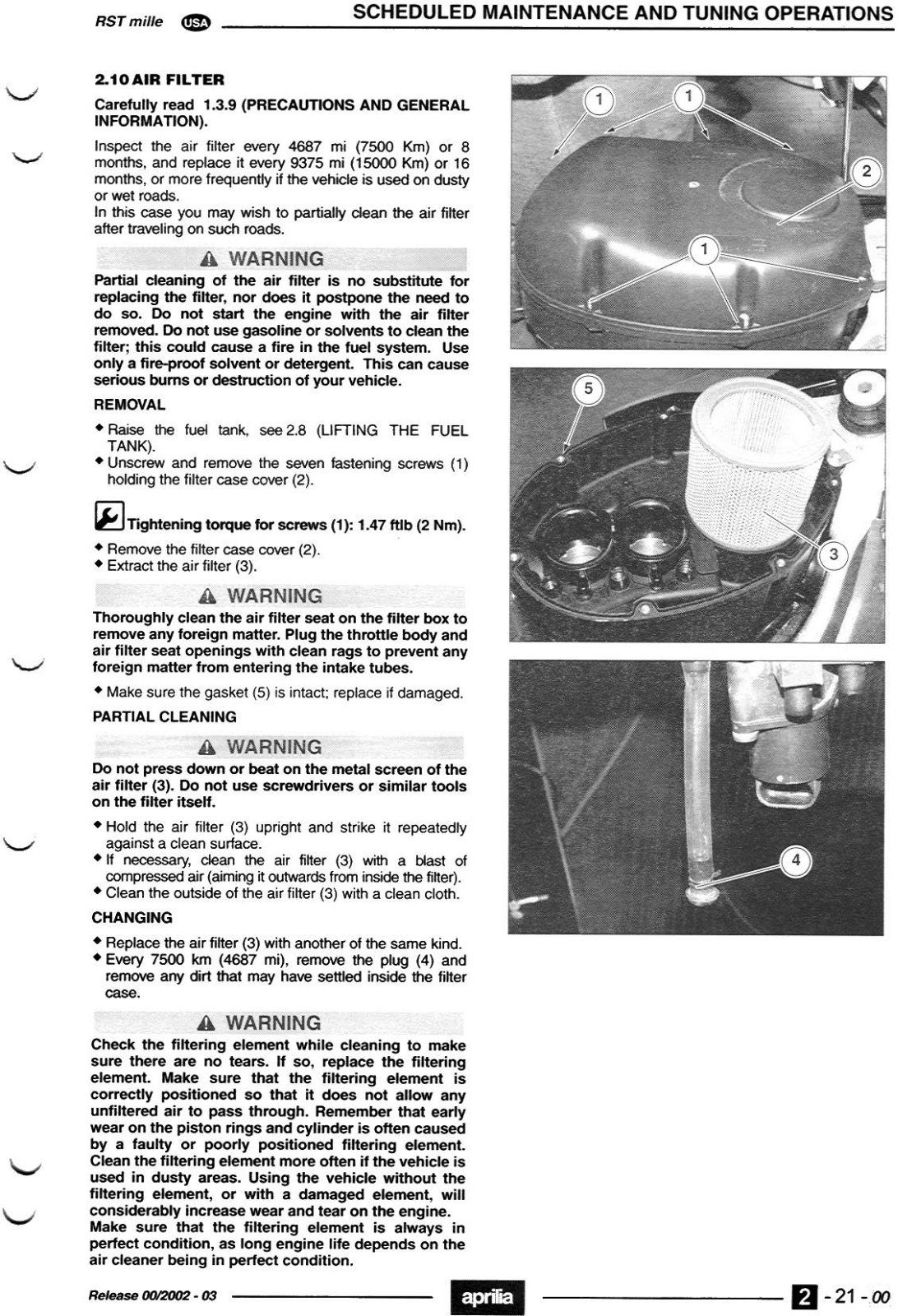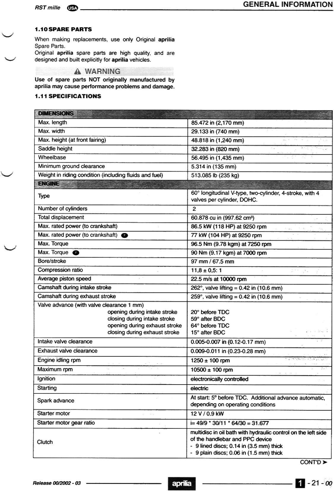 Aprilia RST Mille 2000 2003 Workshop Manual