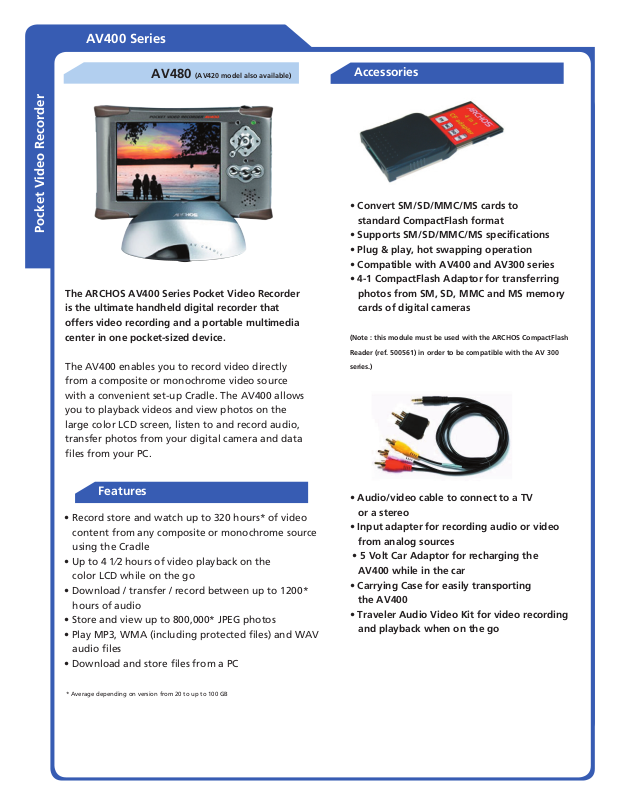 The ARCHOS AV400 Series Pocket Video Recorder