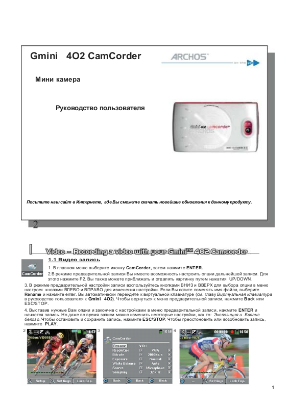 в руководстве пользователя на русском языке к Gmini 4O2). Чтобы вернуться к меню