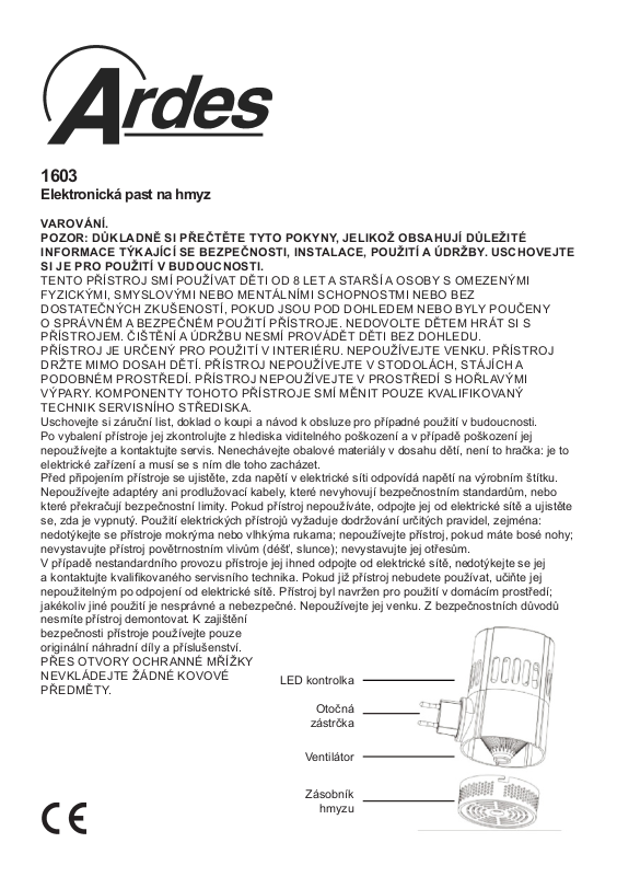 nepoužitelným po odpojení od elektrické sítě. Přístroj byl navržen pro použití v domácím prostředí;