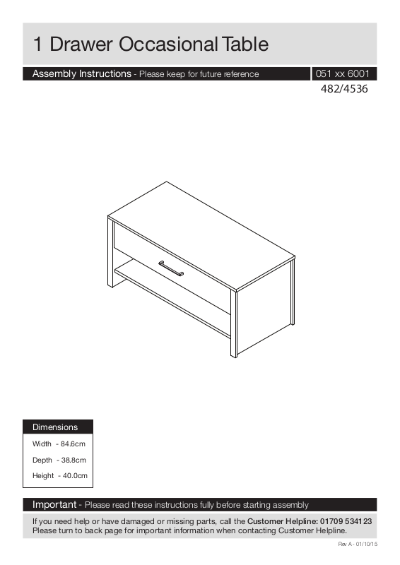 If you need help or have damaged or missing parts, call the Customer Helpline: 01709 534123