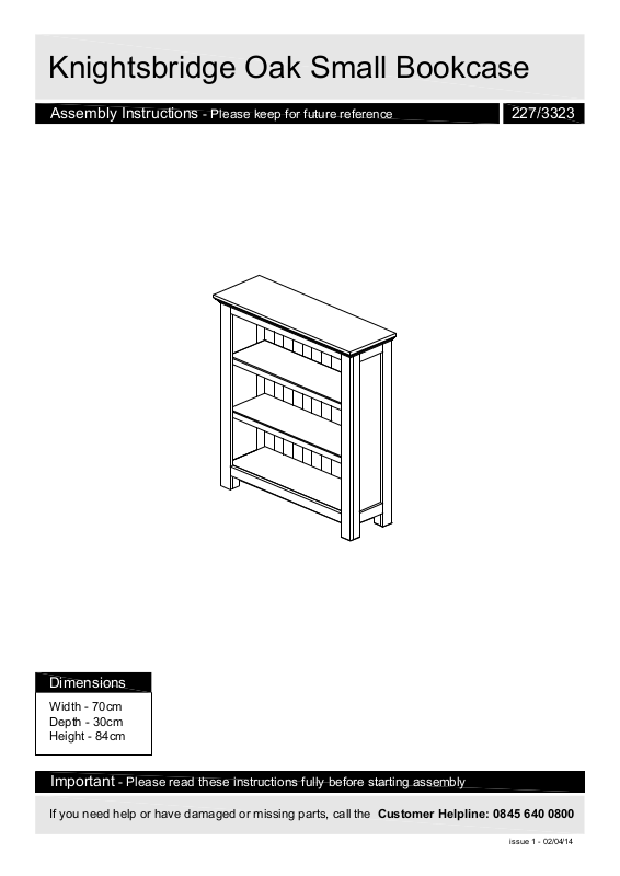 If you need help or have damaged or missing parts, call the Customer Helpline: 0845 640 0800