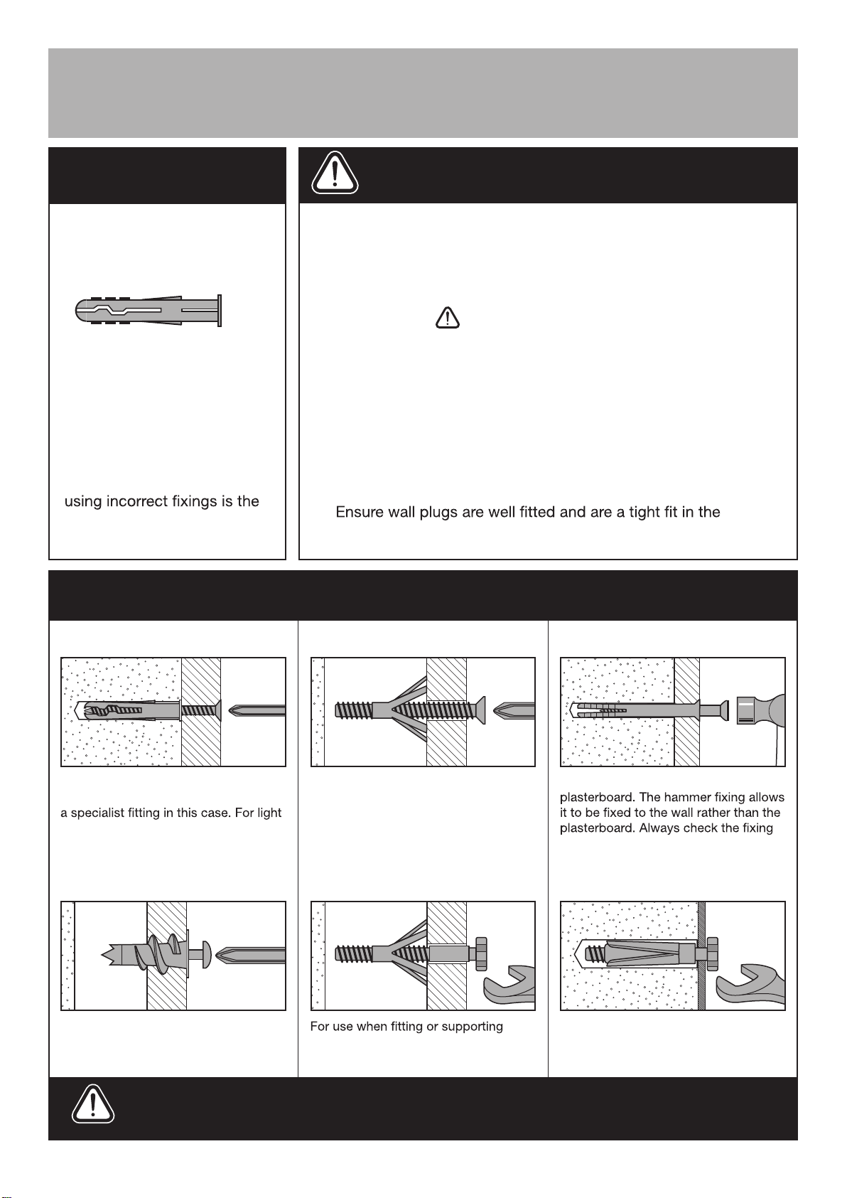 5) Ensure wall plugs are well fitted and are a tight fit in the drilled hole.