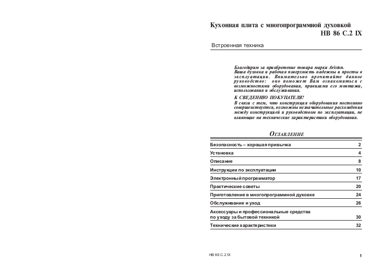 Электрическая многопрограммная духовка HB 86 Ñ2 IX