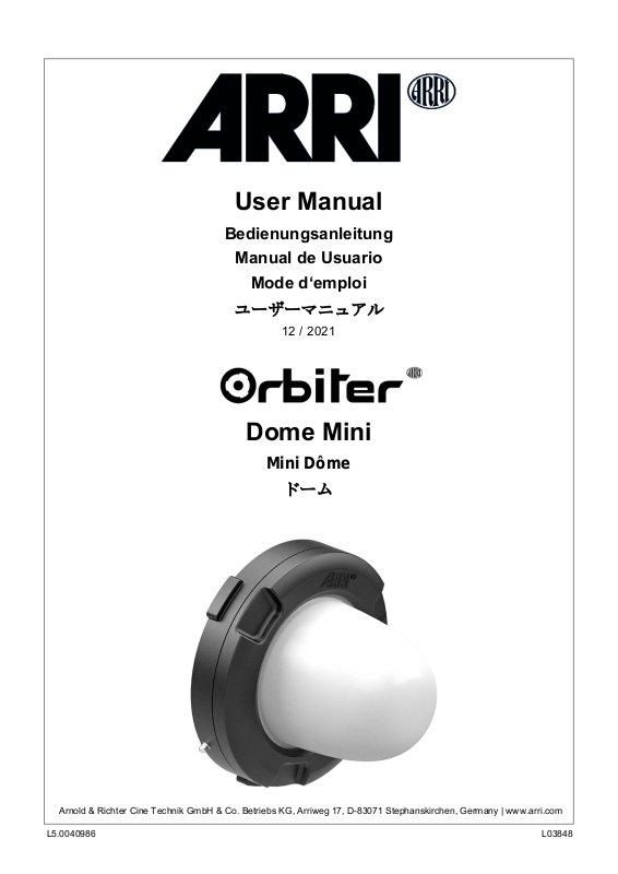 d’Installation et de Sécurité de l’Orbiter, téléchargeable gratuitement sur le site web www.arri.com.