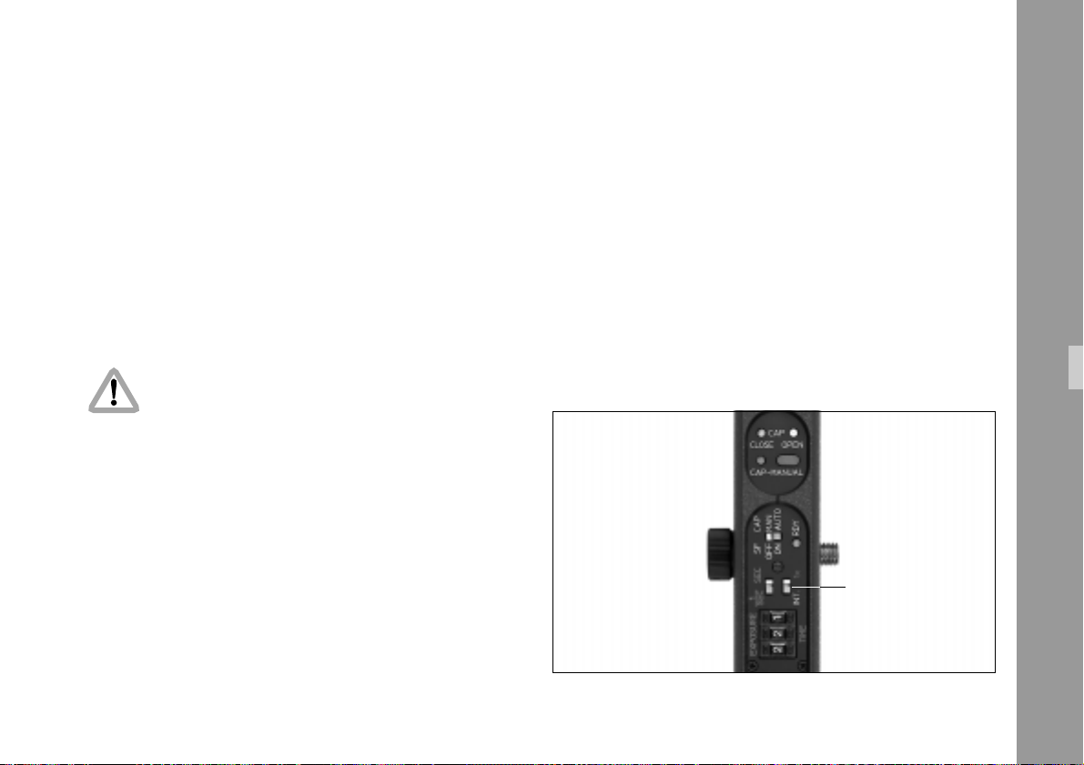 RDY LED illuminates redCAP-MANUAL blinks redError with external capping shutter• Switch off SF ON/OFF switch,