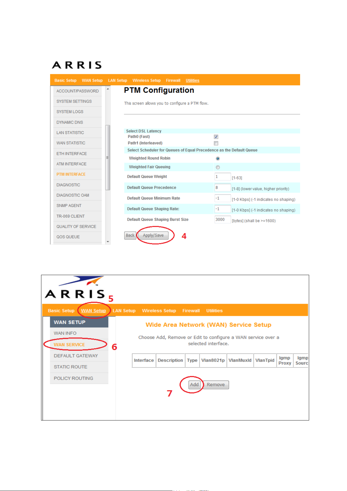 click 'Utilities' and select 'PTM INTERFACE'.Click 'add' and configure a PTM flow then apply.