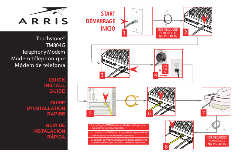 • La conexión del TM804G al cableado telefónico doméstico requiere la instalación por parte de su proveedor de servicios