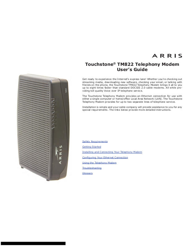 Note: For best performance, use high-quality RG-6 type coax cable and minimize or eliminate splitters between the cable jack and the Telephony Modem.