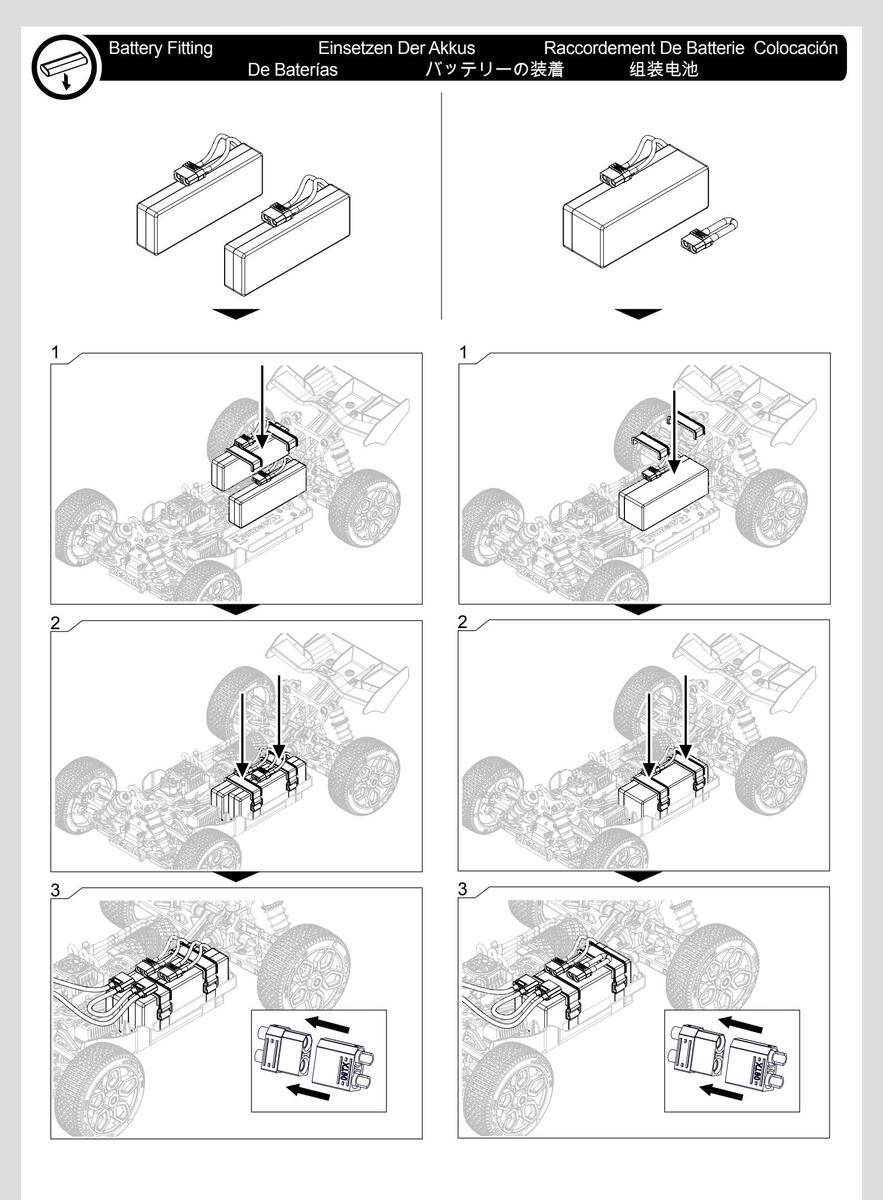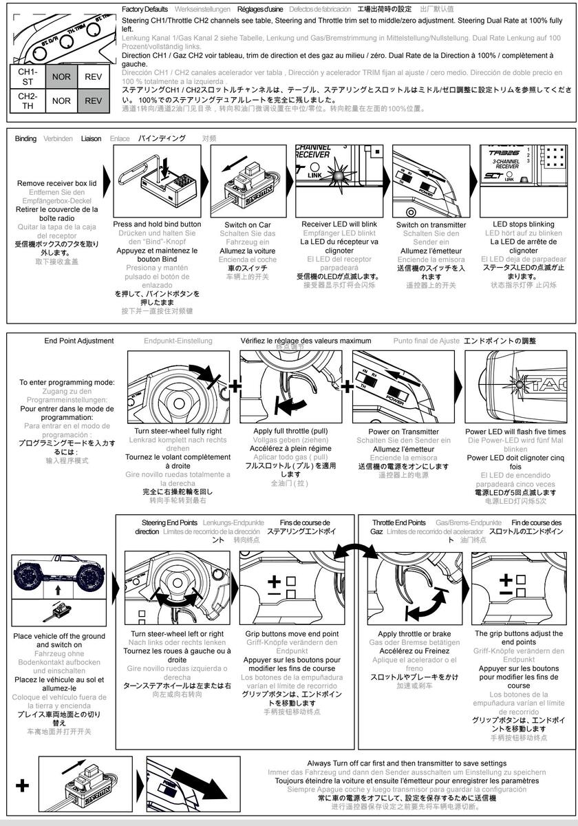 réinitialisation d'usine est effectuée. Para restablecer el CES a la fábrica de ajustes predeterminados conectar una batería, encienda el transmisor y luego el coche. Mantenga pulsado el botón SET durante 4