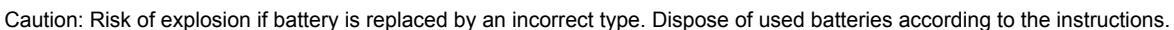 注意 爆炸危险 如果更换的电池类型不正确。按照说明处理废旧电池。