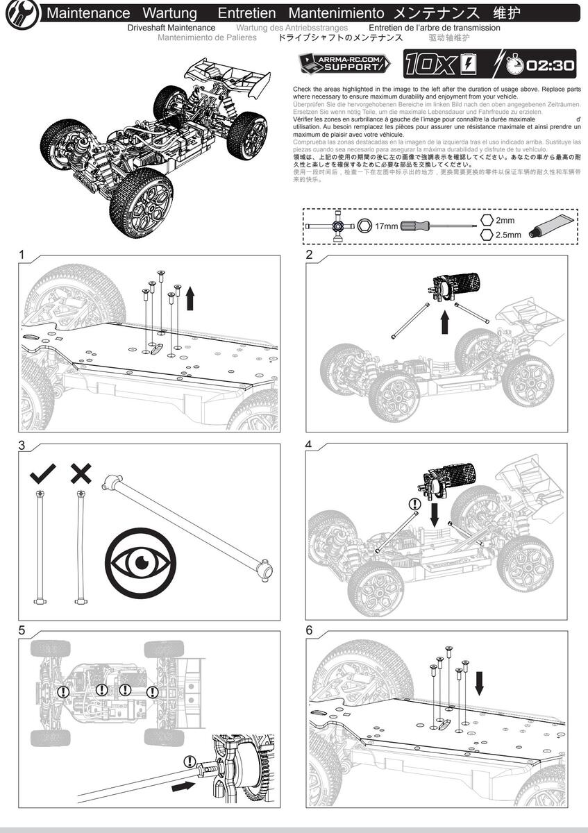 8.4Bei ARRMA möchten wir, dass Sie lange Freude an Ihrem High-Performance-RC-Modell haben. Sollten Sie Fragen zu Betrieb, Wartung, Tuning oder Reparatur haben, dann bieten wir eine Fülle von Möglichkeiten. Gehen Sie auf arrma-rc.com, um mehr über Hilfestellung, Teile oder Tuningteile zu erfahren "GO FOR IT" ist ein weltweites Forum für die Benutzer und Eigner von ARRMA-Produkten. Hier finden Sie andere ARRMA-Nutzer, erhalten Hilfestellung und vieles mehr. Sollten Sie einmal keine Antworten finden, dann kontaktieren Sie uns über upportUSA@ARRMA-RC (USA) oder support@arrma-rc.com (ROW) und wir werden alles tun, um Ihnen helfen zu können.`