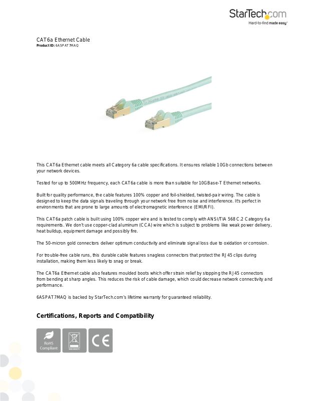 6ASPAT7MAQ is backed by StarTech.com’s lifetime warranty for guaranteed reliability.
