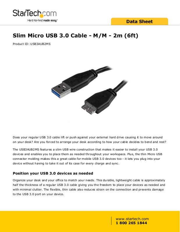 This Micro USB 3.0 cable is backed by StarTech.com’s Lifetime warranty for guaranteed reliability.