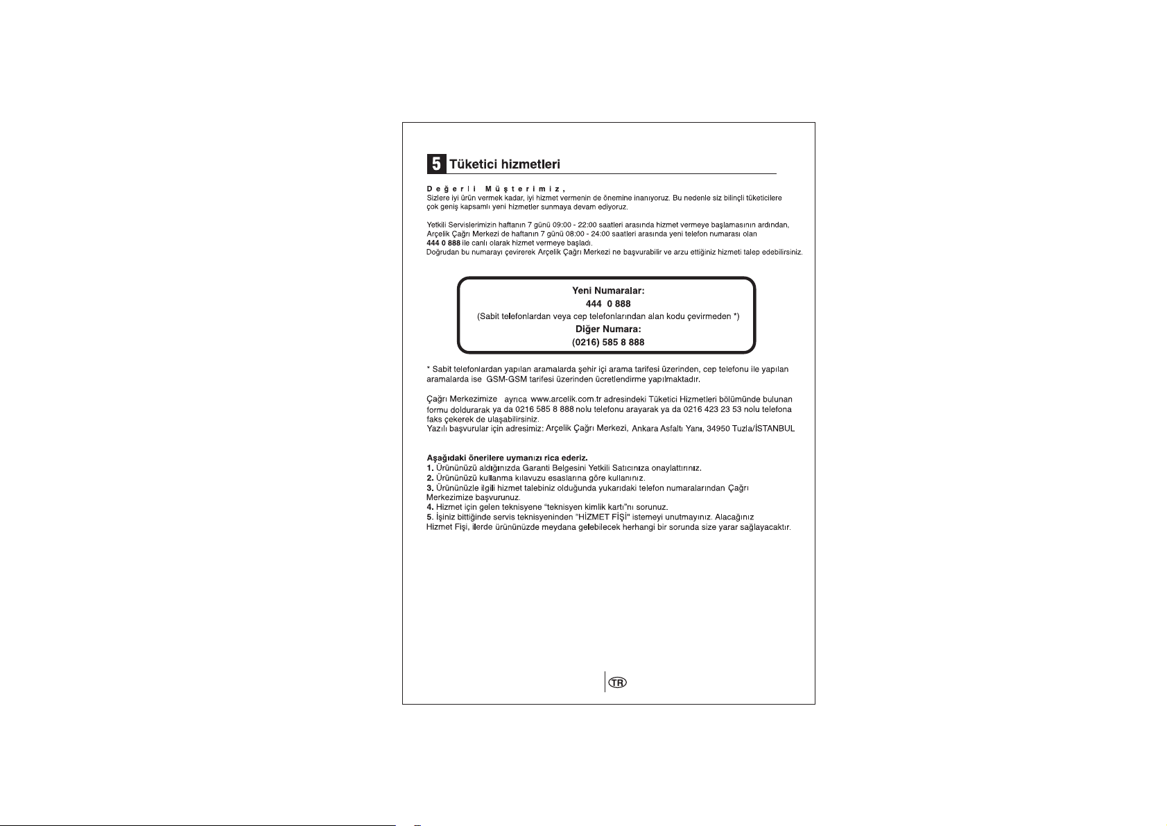 6. Kullan›m ömrü: 10 y›ld›r. (Ürünün fonksiyonunu yerine getirebilmesi için gerekli yedek