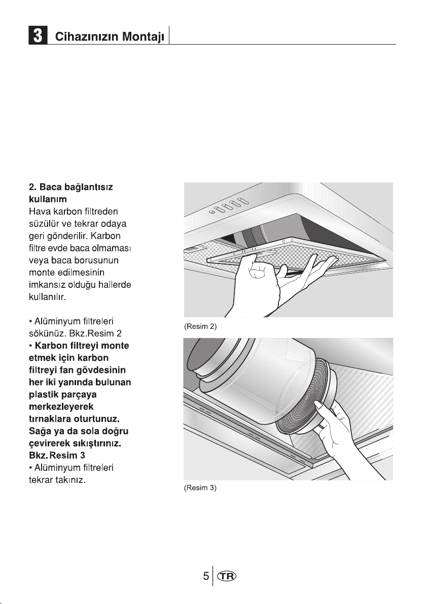 Davlumbazýnýzda karbon filtre takýlý ise, filtre çýkarýlmalýdýr.
