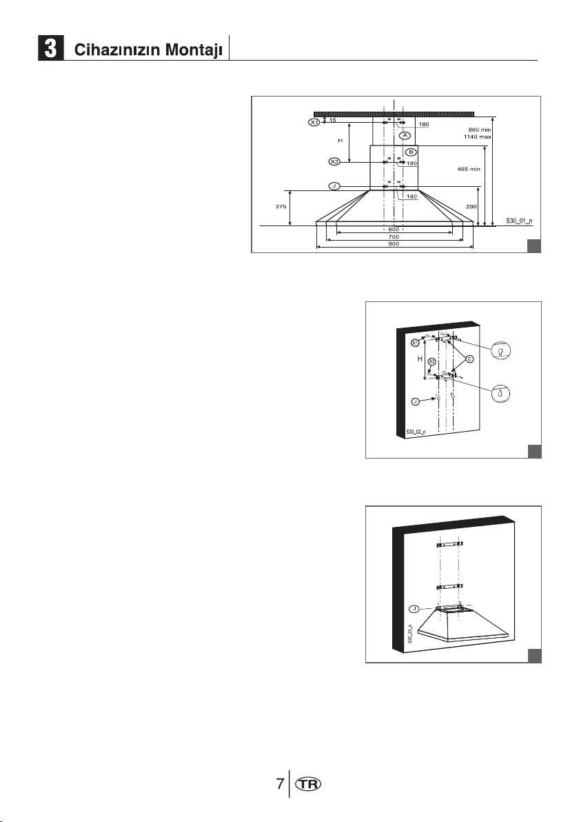 4. Davlumbazý duvardaki dýþ deliklere J1 ve J2 tesbit