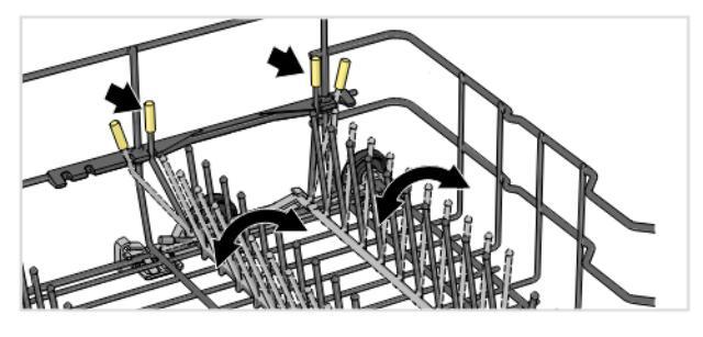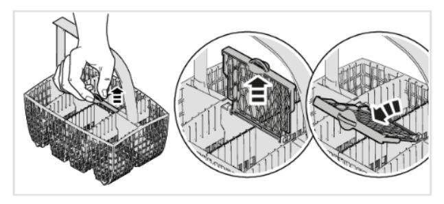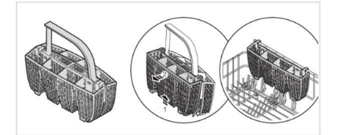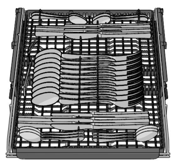 Noże i inne ostro zakończone przedmioty należy układać ostrą stroną w dół w koszu na sztućce lub poziomo w innych koszach.