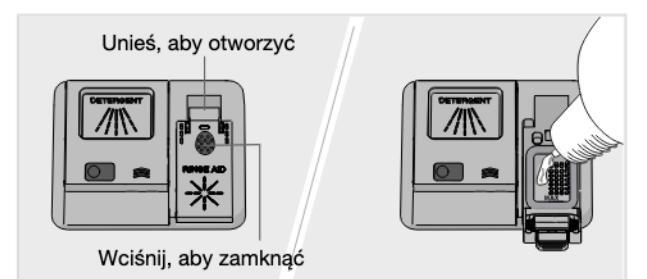 Zainstaluj zmywarkę; zob. w rozdziale Montaż. Następnie otwórz drzwiczki i naciśnij U.