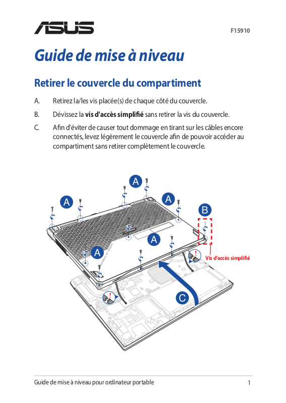 B. Dévissez la vis d'accès simplié sans retirer la vis du couvercle.