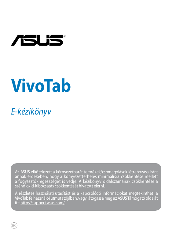 VivoTab felhasználói útmutatójában, vagy látogassa meg az ASUS Támogató oldalát