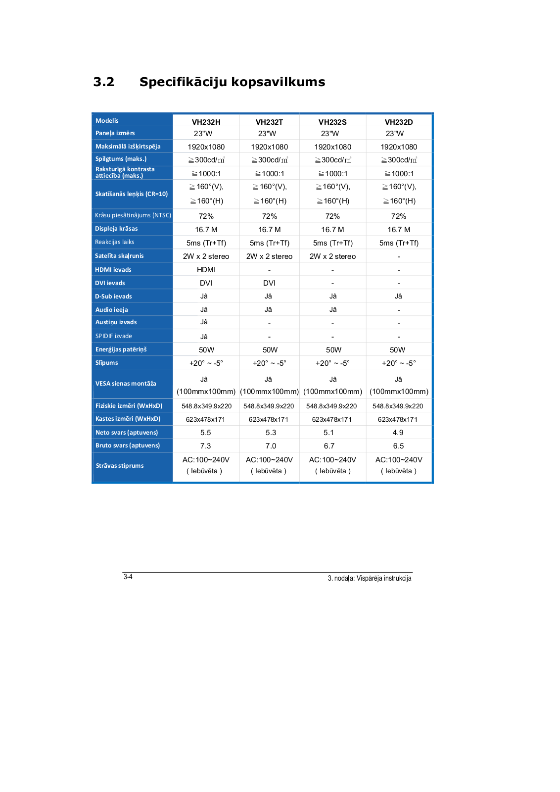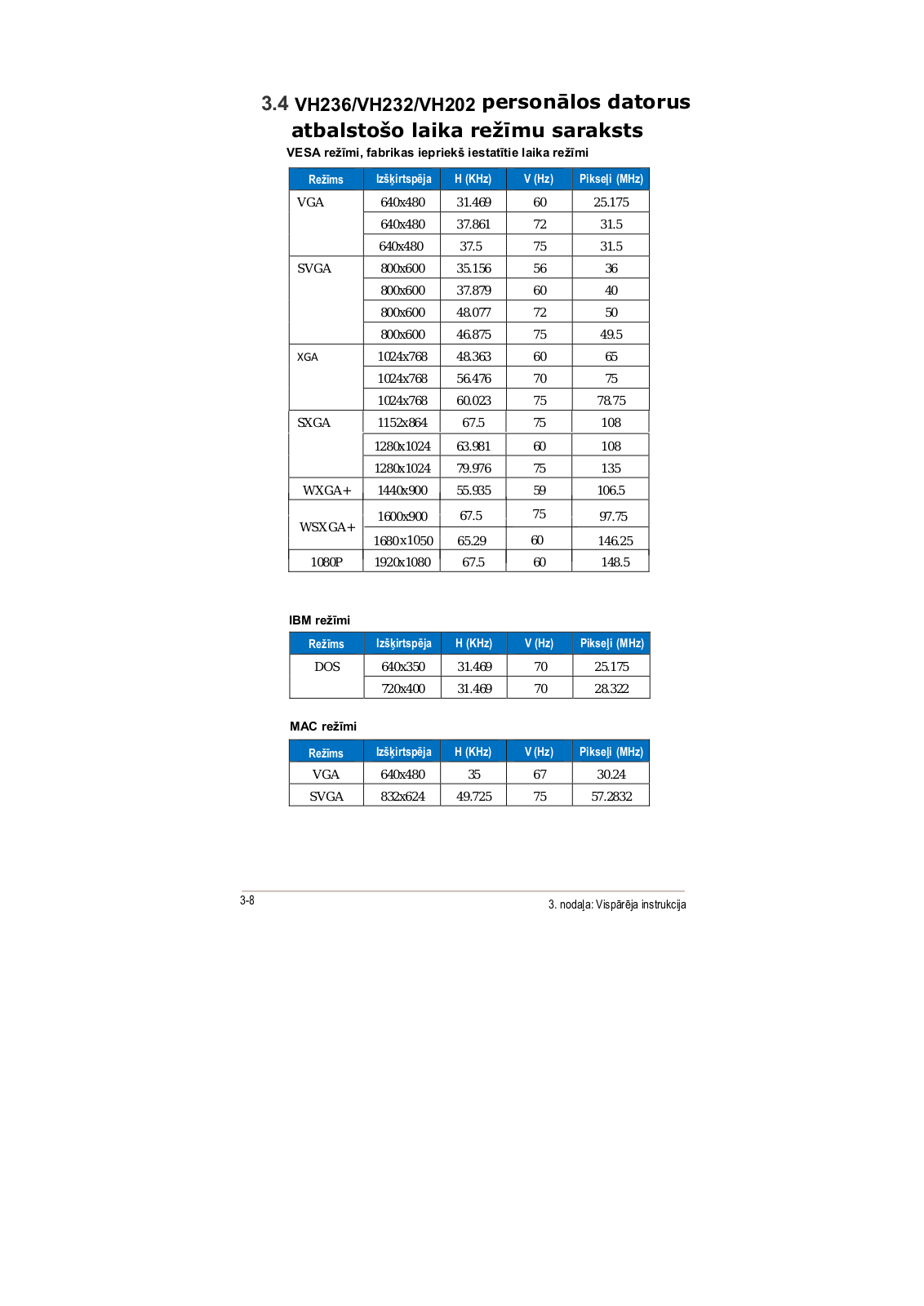Asus VH232S, VH232H, VH232T, VH236H, VH202D, VH202N, VH202T, VH232D, VH202S User Manual [lv]