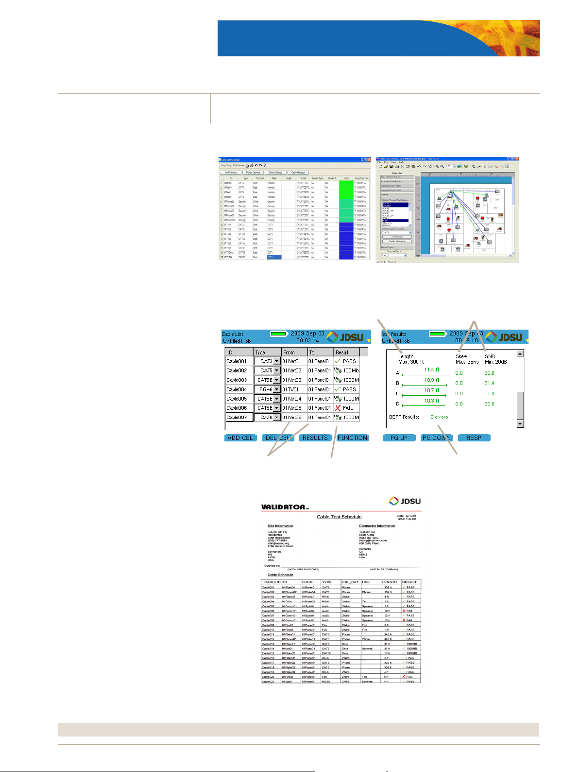 up each job, denes the scope of the job, aids in testing cable runs, and produces reports for the installer and customer.