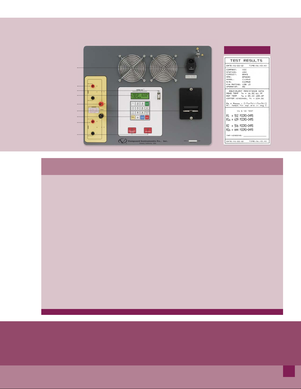 highly inductive power transformers. The unit’s dual resistance-reading input