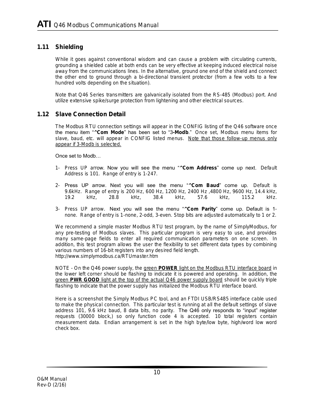 ATI Technologies Q46, Q46H/63, Q46H/79PR, Q46H/64, Q46P Communications Manual