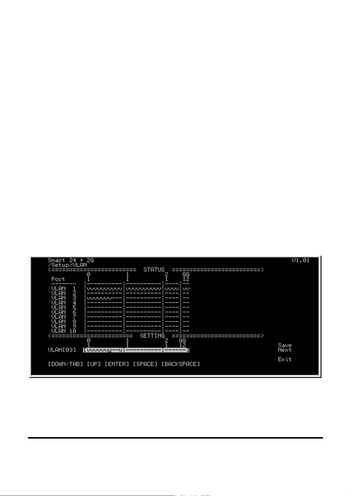 l’état “-“ et une VLAN2 dans laquelle nous aurions attribué l’état “V”