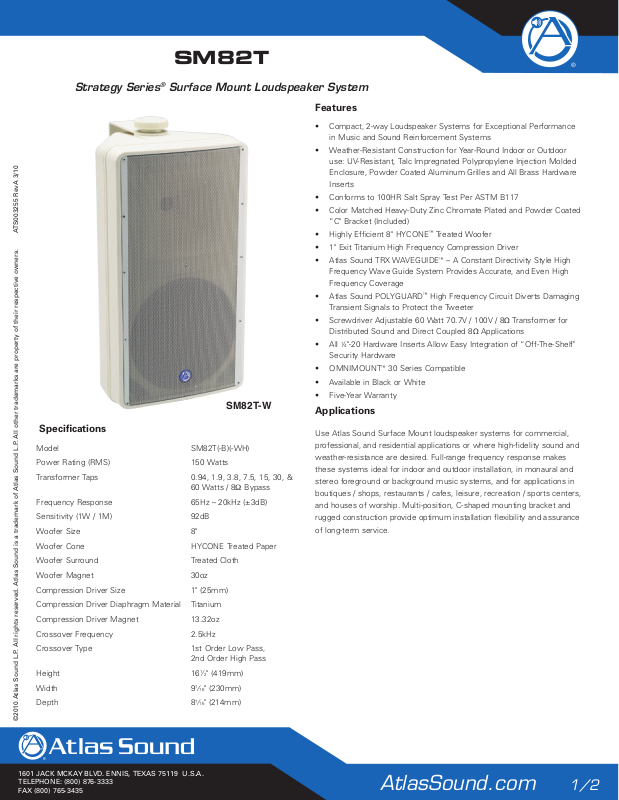 Atlas Sound SM82T User Manual