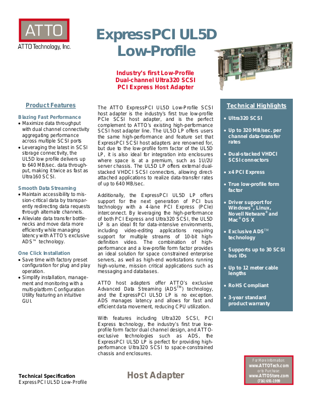 Express technology, the industry’s first true lowprofile form factor dual channel design, and ATTOexclusive technologies such as ADS, the