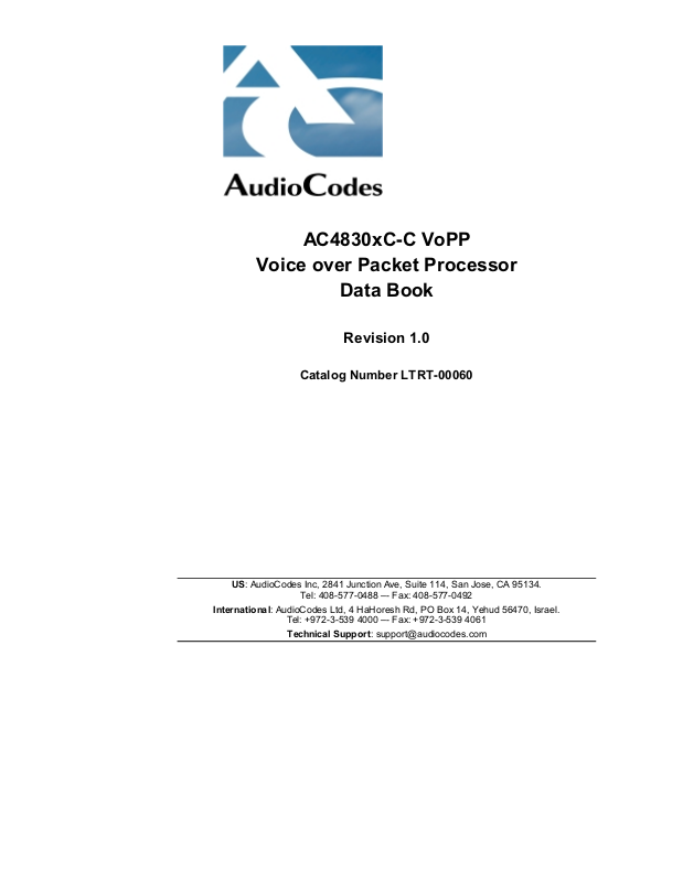 This Data Book describes the AC4830xC-C VoPP (Voice over Packet Processors) from