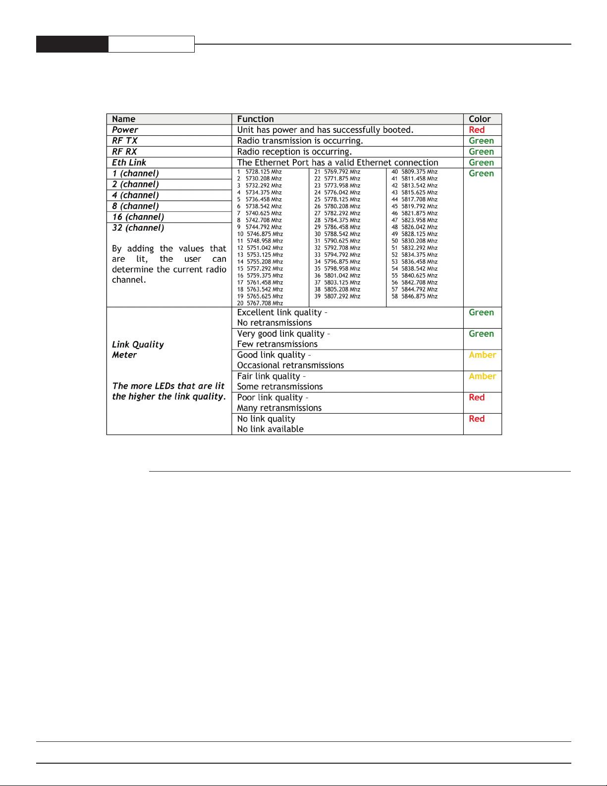 Power, Ethernet Link, RF RX, RF TX, 6/Channel, and 6/Link Quality