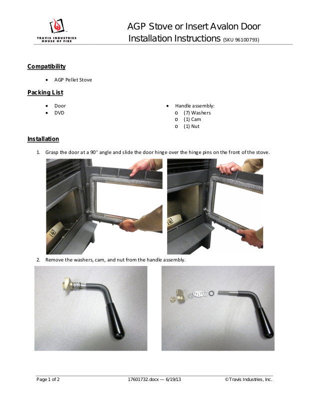 Avalon Firestyles AGP Stove or Insert Avalon Door User Manual