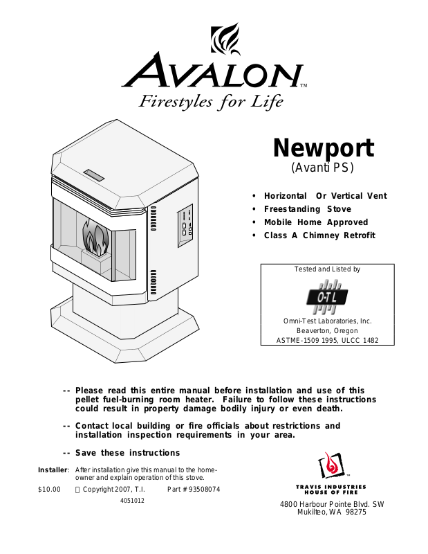 We welcome you as a new owner of a Newport (Avanti PS) pellet heater. In purchasing a Newport you