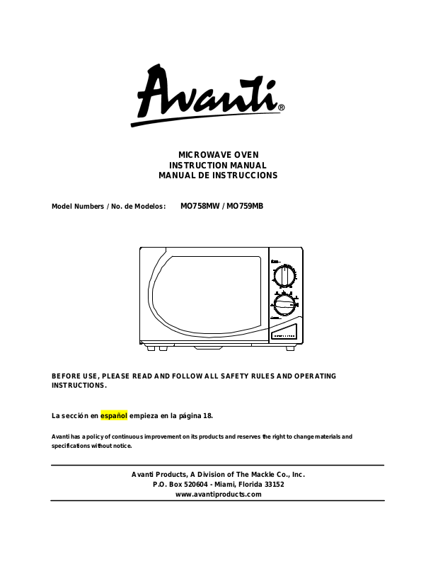 Thank you for purchasing this fine Avanti product. Please fill out this card and return it within 100 days of