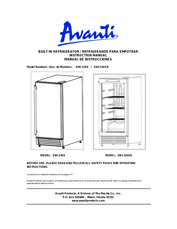 Model Numbers / Nos. de Modelos: OBC32SS / OBC33SSD