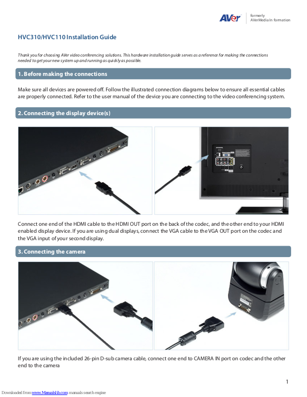 Thank you for choosing AVer video conferencing solutions. This hardware installation guide serves as a reference for making the connections