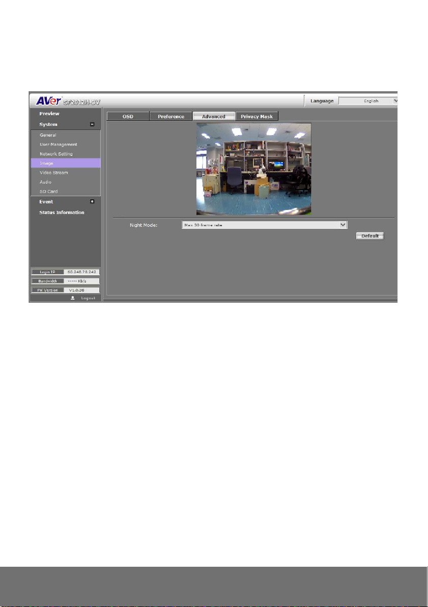 Video Adjust Brightness, Contrast, Sharpness, BLC, Night Mode