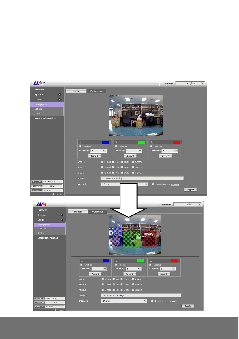 Motion Detection Yes, 3 different areas