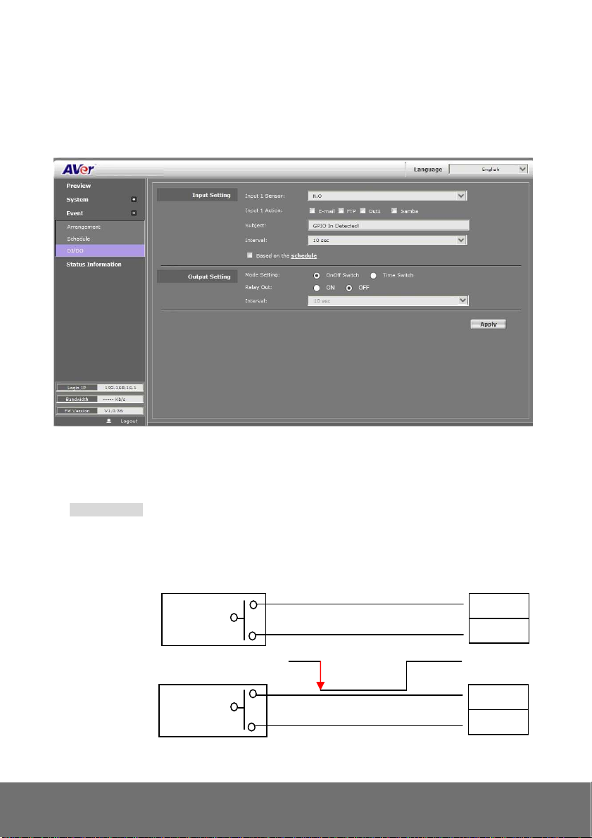 Trigger the “Normal ON” (Normal Close) indoor illumination off when event / motion occur: