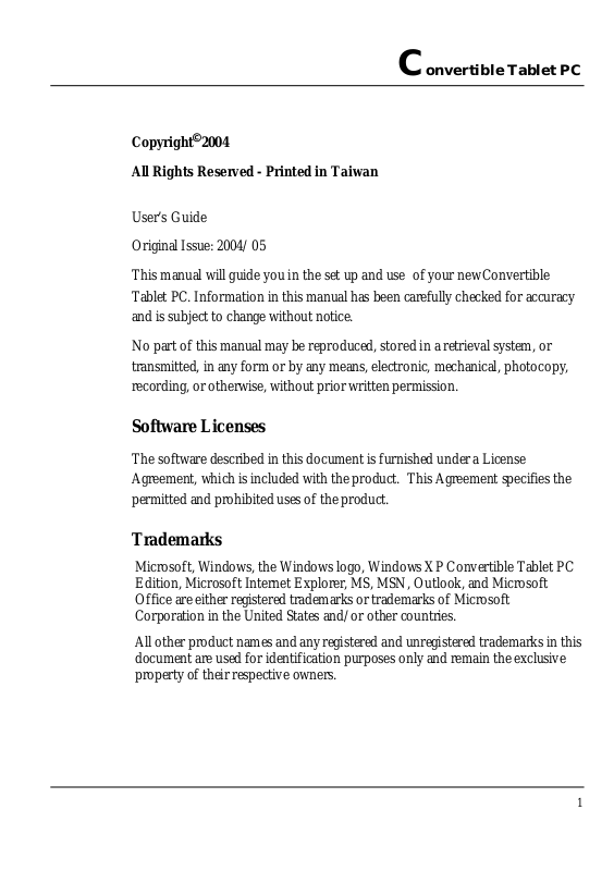 Microsoft, Windows, the Windows logo, Windows XP Convertible Tablet PC