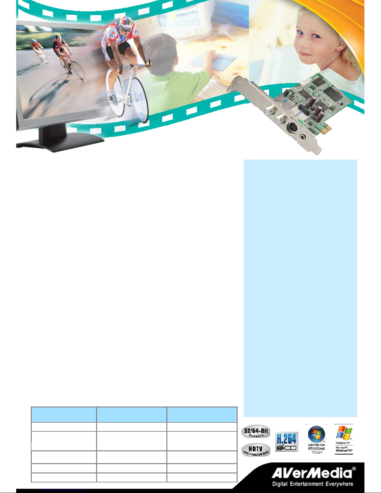 offering up to 500Mb/s. The AVerTV Combo PCI-E ensures continuously