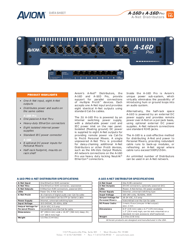 A-16D Pro A-Net Distributor sPecificAtioNs
