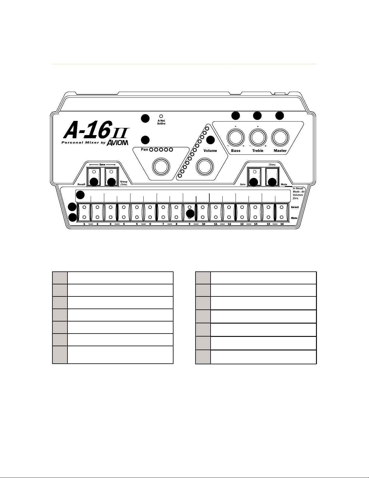 Dual Profile Channel, Network MixBack, and AllFrame are trademarks of Aviom, Inc. All other trademarks
