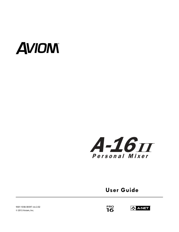 Aviom, A-Net, the A-Net icon, Pro16, Pro16e, Pro64, Virtual Data Cables, m-control, One-Touch Ambience,
