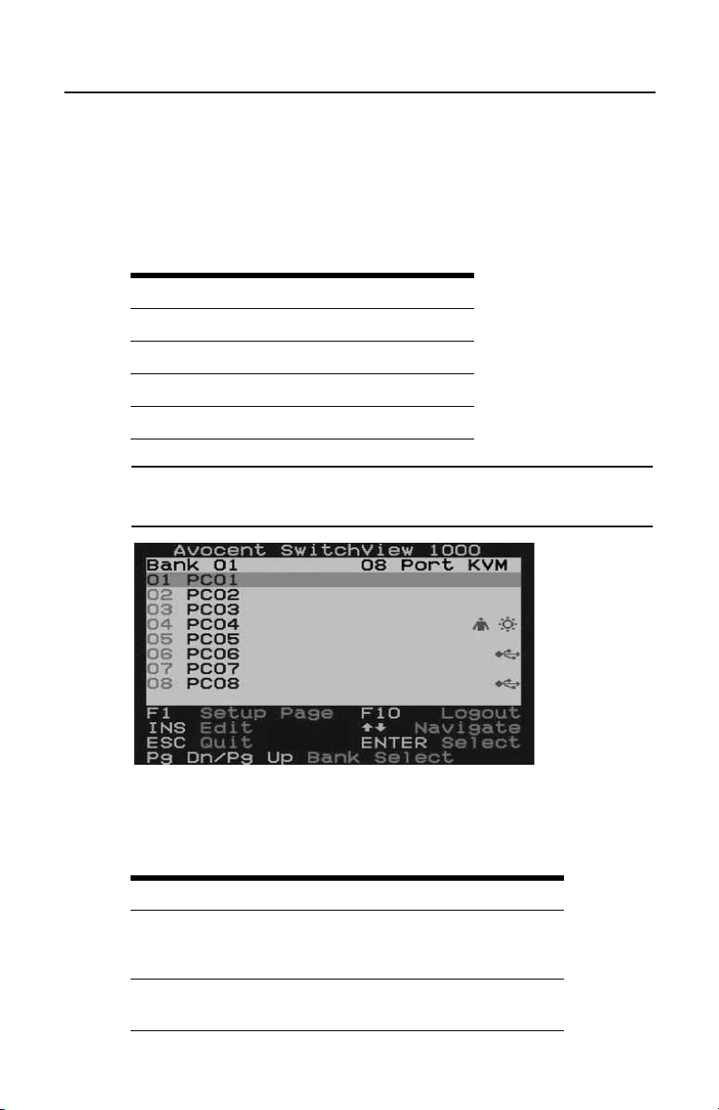Figure 1.3: Main OSD Window (8-port SwitchView 1000 Switch)